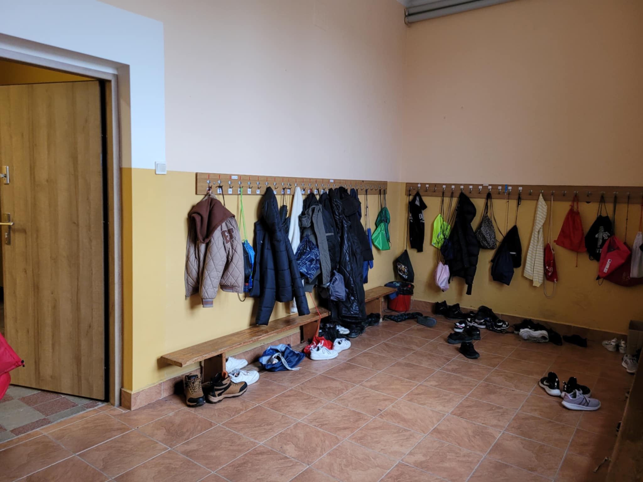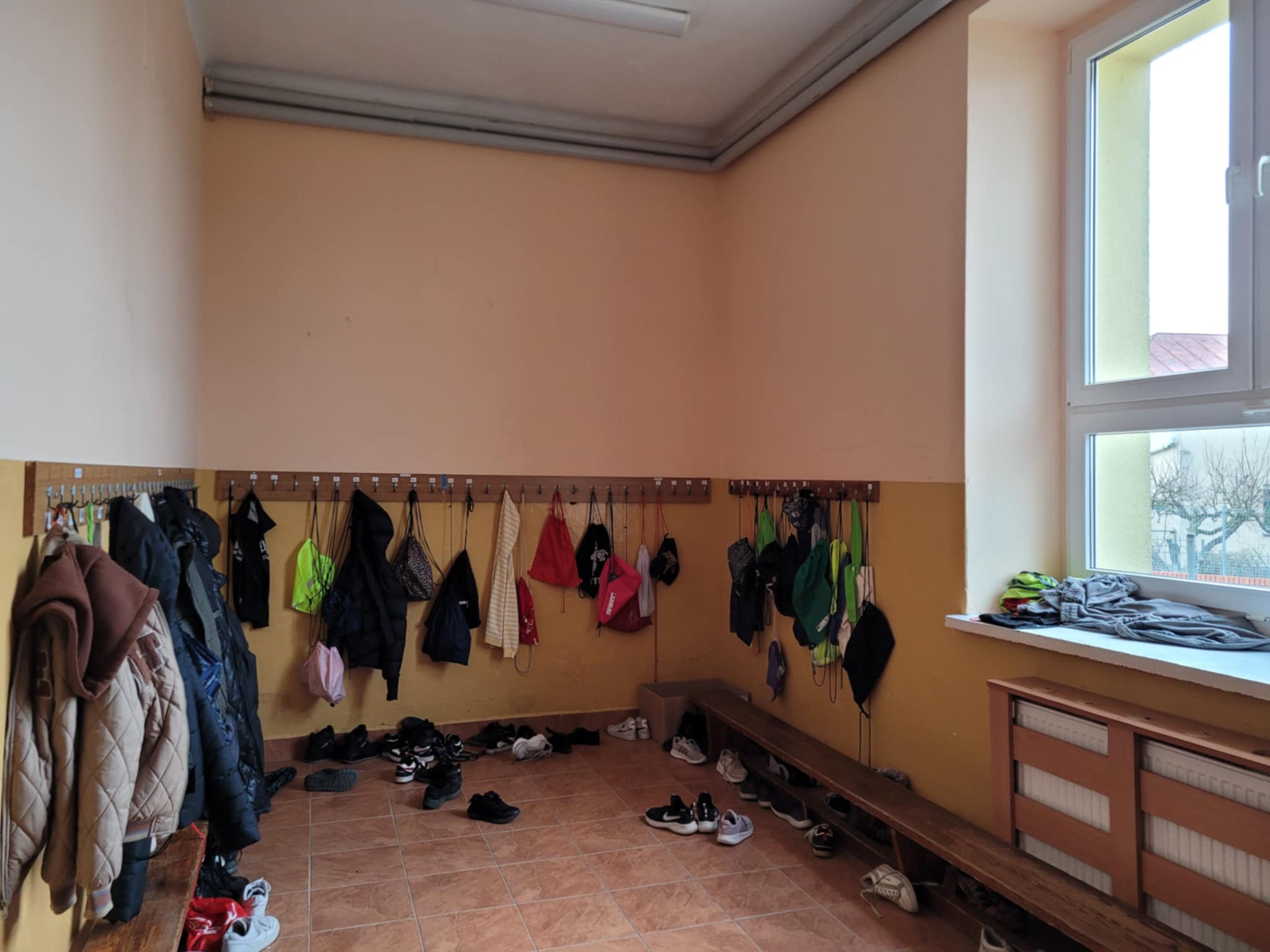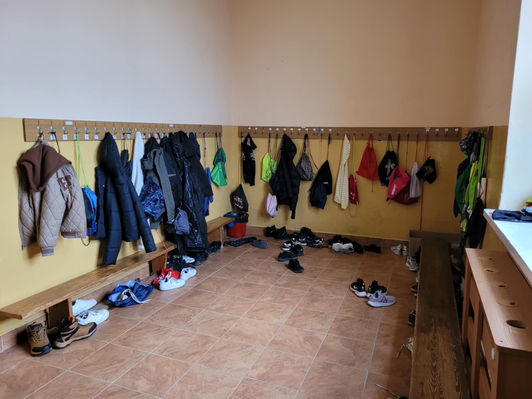 Nasza szatnia pamięta nie tylko czasy kredy, ale także czasy człowieka prehistorycznego. Trudno w niej utrzymać porządek, gdyż uczniowie nagminnie nie odkładają zmienianych butów do worków. W konsekwencji walają się one po całym, dość ciasnym pomieszczeniu. Dodatkowo „dowcipnisie” chowają buty kolegom, więc każdy ranek w naszej szatni to poszukiwania zaginionego obuwia.